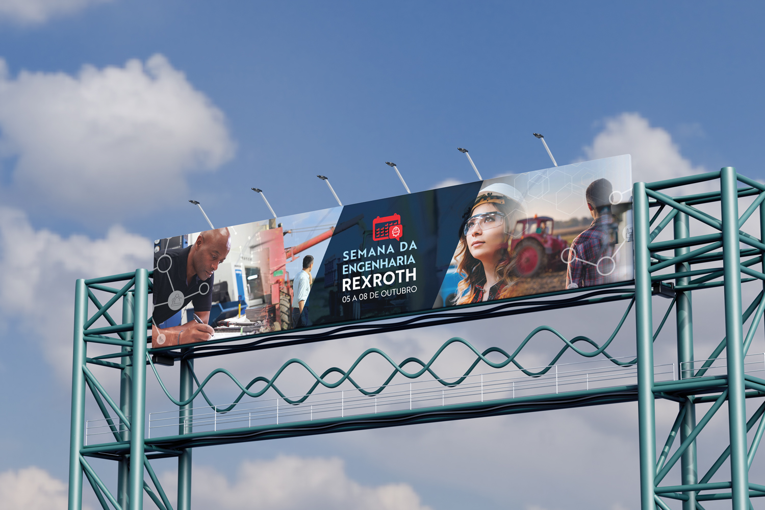 Para uma marca global como aRexroth, cada ponto de contato visual precisa refletir com clareza sua força e seu posicionamento. A Serifa Comunicaçãofoi responsável pelo desenvolvimento e adaptação depeças de mídia OOH, criando uma comunicação visual que traduz a tecnologia e a precisão da marca em formatos de grande impacto.